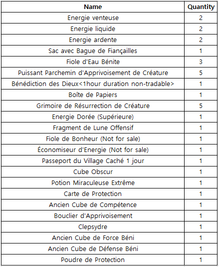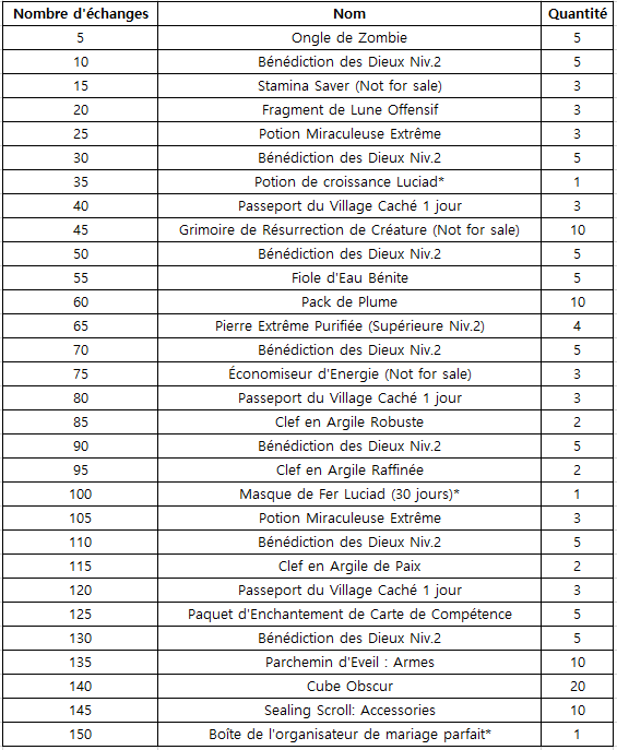 *Potion de croissance Luciad - Donne 200% d'EXP supplémentaire, cumulable avec l'économiseur d'endurance et les Potions Miraculeuses normales.