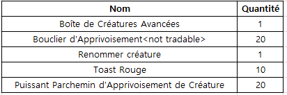 La boîte peut contenir l'une des récompenses suivantes de la liste ci-dessous :